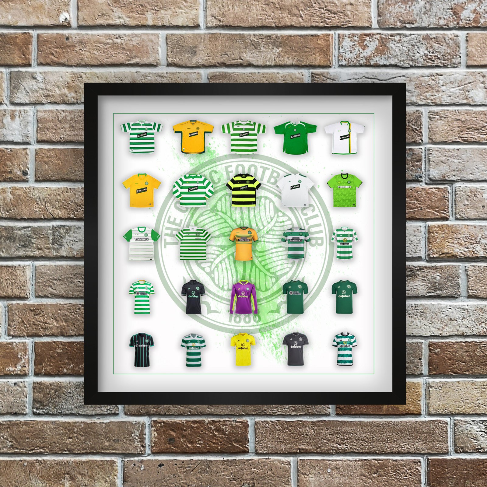 Celtic FC jersey print over the last few decades, Print measures 600 x 600mm