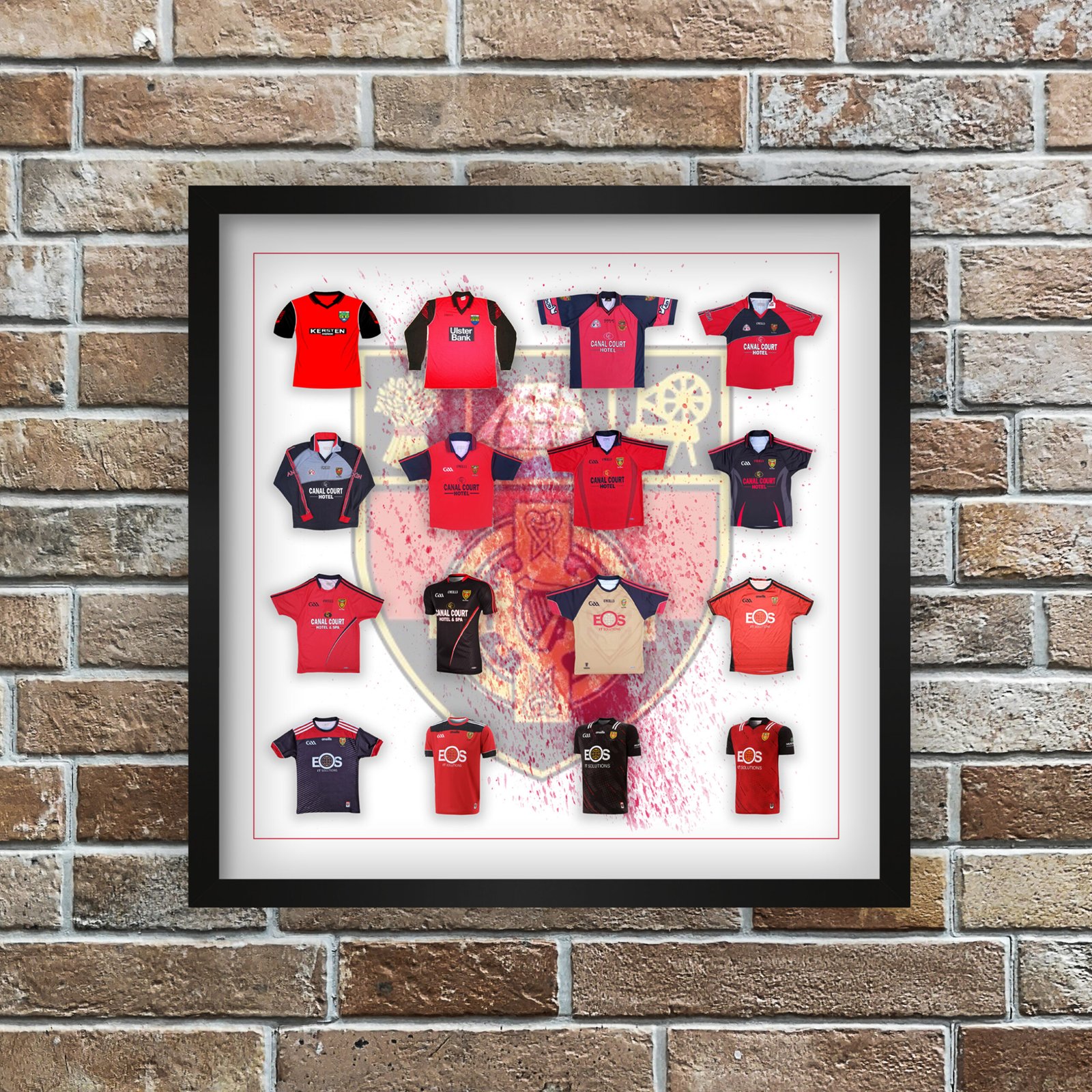 Down GAA jersey print over the last few decades, Print measures 600 x 600mm, printed on 270 gsm Pro Lustre photographic paper.